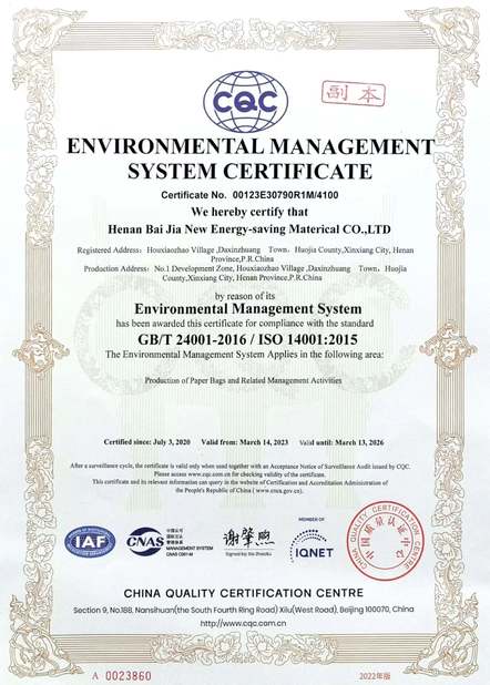 La qualité passe avant tout, de la matière première en papier kraft aux produits finis, Baijia dispose d'environ 30 ensembles d'appareils de test et de son propre système de contrôle qualité. Ce qui garantit que chaque étape de la production est conforme aux normes.