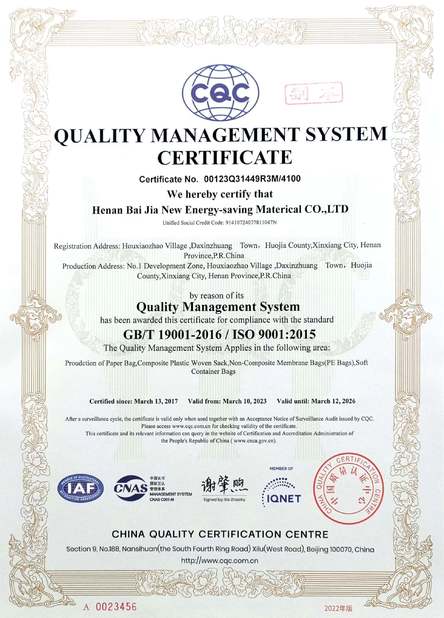 a été fondée en 1996 et se consacre à fournir des solutions d'emballage intégratives de sacs en papier kraft à 500 entreprises du classement Fortune et à des clients nationaux de premier ordre. Grâce à des années de développement continu, l'entreprise est passée d'une entreprise d'emballage de papier industriel de premier plan sur le marché national à un fournisseur de solutions d'emballage flexibles intégrées, offrant des produits d'emballage industriels et grand public. Depuis sa création, l'entreprise a constamment maintenu une position de leader dans l'industrie en termes d'efficacité de production, de capacité à garantir l'approvisionnement pour les commandes en grande quantité et de stabilité de la qualité des produits.